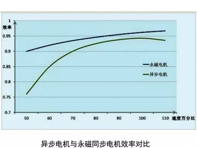 相比感應電機,永磁同步電機功率密度高、能量轉換效率高(約 90%-95%)、能耗較低。現(xiàn)階段超過90%的電動汽車均采用永磁同步電機,因為同等功率下永磁同步電機體積更小,效率更高。